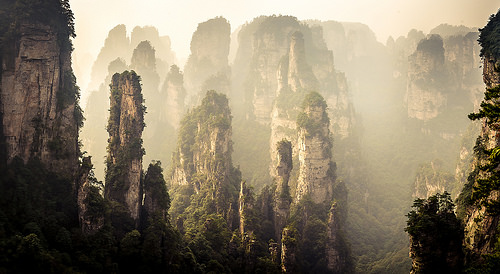 Ubicadas en el Parque Forestal Nacional Zhangjiajie, en la provincia de Hunan, este bosque es fuera de lo común, ya que los protagonistas son enorme rocas en formas de columnas que se elevan a los cielos hasta rozar las nubes (la mayor de todas mide 1.080 metros de altura).