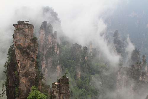 Ubicadas en el Parque Forestal Nacional Zhangjiajie, en la provincia de Hunan, este bosque es fuera de lo común, ya que los protagonistas son enorme rocas en formas de columnas que se elevan a los cielos hasta rozar las nubes (la mayor de todas mide 1.080 metros de altura).