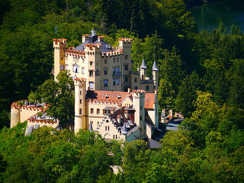 El castillo de Hohenschwangau (Gran Condado del Cisne), fue construido por el arquitecto Domenico Quaglio en el 1832 para el rey Maximiliano II de Baviera sobre la antigua fortaleza medieval Schwanstein del siglo XII. Se encuentra en el pueblo de Shwangau, dentro del municipio de Füssen. Se tardo 5 años en construir y es de estilo neogótico. Era la residencia de verano de la familia real.
