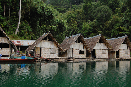 El Lago Cheow Larn es uno de los lugares más hermosos del parque, se puede recorrer en barca y hospedarse en sus cabañas flotantes.