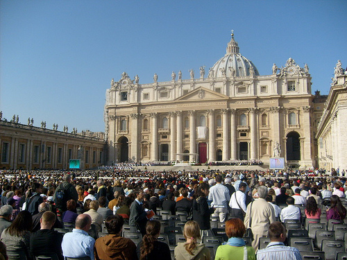 La Plaza de San Pedro es considerada una de las más hermosas y grandes de todo el mundo. Sus dimensiones son de 320 metros de longitud por 240 metros de anchura. En las celebraciones eucarísticas y diversos acontecimientos importantes sucedidos, la Plaza ha logrado albergar a más de 300.000 personas.