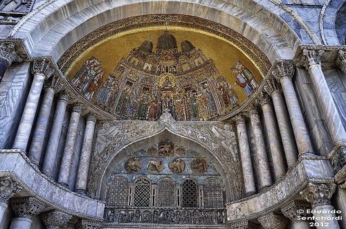 La Basílica de San Marcos, que al inicio pretendía ser una prolongación del Palacio Ducal, se comenzó a construir en el año 828 con el principal objetivo de albergar el cuerpo de San Marcos, el cual había sido traído desde Alejandría. A pesar de todo, la obra actual pertenece al siglo XI; esto se debe principalmente al paso del tiempo, haciéndola víctima de diferentes alteraciones y cambios que la han moldeado hasta convertirla en el lugar que es actualmente,