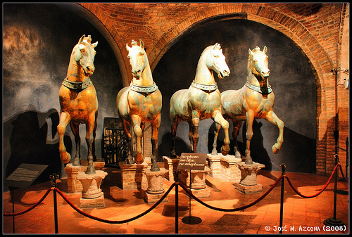 Estos caballos hechos en bronce y bañados en oro estaban en el hipódromo de Constantinopla. Se lograron obtener como un botín tras la cuarta cruzada.