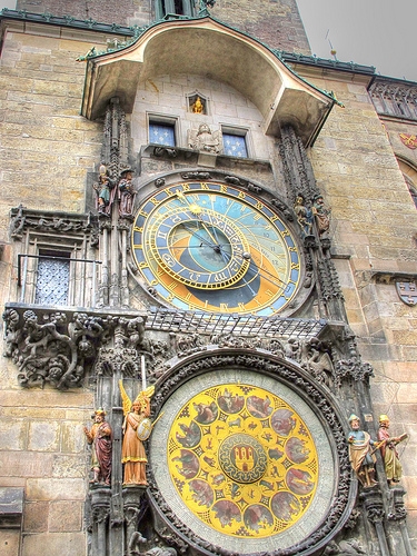 Adosado al Ayuntamiento se encuentra la zona más concurrida en las horas de más público: el Reloj Astronómico. Da la hora con carillón y desfile de los apóstoles y de la muerte asomando en forma de esqueleto. Sus esferas miden el tiempo actual e incluso el babilónico y muestran la posición de los astros.