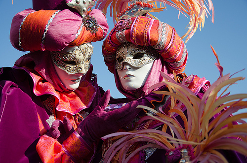 Durante la temporada de carnaval, Venecia está llena de personajes disfrazados, bailes de máscaras, música, entretenimiento y puestos de comida. El festival anual se inicia 40 días antes de Pascua y termina un día antes del Miércoles de Ceniza. Las máscaras venecianas decorativas son una parte importante dentro carnaval. Un jurado de diseñadores de vestuario y moda internacionales votan por la mejor máscara durante la última semana de la celebración.