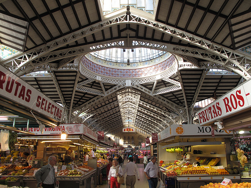 Este precioso mercado cuenta con unas grandiosas dimensiones, ya que posee una impresionante cúpula de 30 metros de altura y decorado al estilo del modernismo valenciano. Su estructura es de hierro forjado con vidrieras, cerámicas y madera.