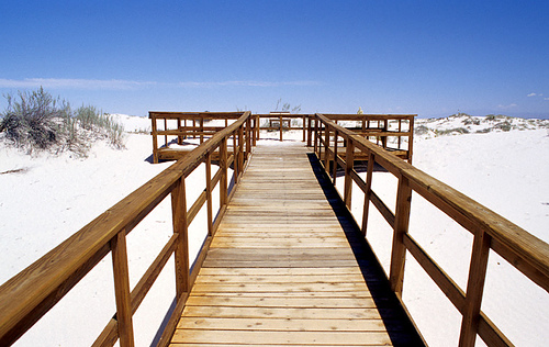 El Monumento Nacional de Arenas Blancas fue nombrado por el Presidente Herbert Hoover e inaugurado en el año 1934. Tiene un centro de visitantes en la puerta de acceso y partiendo de allí cuatro senderos diferenciados que permiten disfrutar de las dunas caminando. El paseo se puede hacer incluso descalzo pues el yeso no convierte en calor la luz solar de forma intensa. También se puede disfrutar en las dunas más grandes de deslizamientos con trineo.