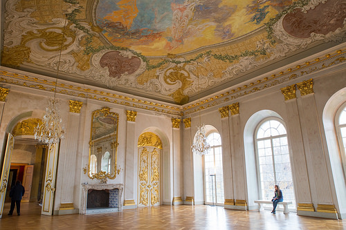 Entre sus salones y estancias hay que destacar la habitación de ámbar, que es llamada así porque está revestida en este material que más tarde se consideraría la octava maravilla del mundo.