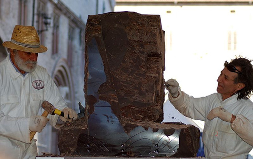 Dentro de las esperadas esculturas de chocolate destacamos para el día 20 de octubre cuatro grandes bloques de 11 toneladas, cada uno de riquísimo Nero Perugina, chocolate de la región Umbra listo para cincelar de la mano de escultores profesionales, que tendrán que centrarse en el tema ecológico de este año denominado “Evergreen”.