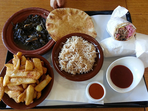 Shawarma es un sándwich o una envoltura hecha con carne shawarma. Shawarma se come generalmente con tabulé, fattoush, pan Taboon, tomate y pepino. Ingredientes incluyen el tahini, hummus, nabos en vinagre y AMBA. Es similar al kebab turco doner y gyros griegos. Popular en toda la región árabe, shawarma se ha apoderado de las calles y patios de comida de Dubai y puede comerse como almuerzo asequible en la tarde o en la noche.