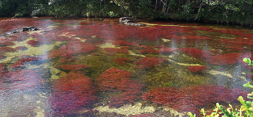 La presencia de algas de agua dulce de diversas tonalidades en su lecho y sus peculiares rocas hacen de este río un paraje de ensueño. El color rojo se lo da el alga Macarenia, el amarillo algunos tipos de rocas sedimentarias y el verde la vegetación de la ribera. Los reflejos del azul cielo y los cambios de iluminación ponen el resto.