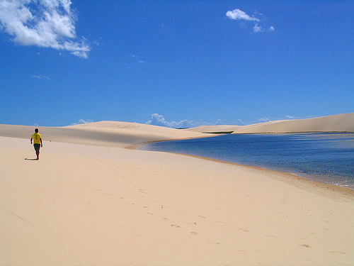 A primera vista parece un desierto, pero ¿con lagos entre sus dunas? Efectivamente, entre los meses de julio y septiembre las fuertes precipitaciones no cesan y el exceso de lluvias en la región provocan que las partes más bajas de las dunas se inunden. Entre las dunas el agua limpia y cristalina se estanca debido a que no es absorbida por la arena. Finalmente, esto provoca un paisaje donde el agua forma un bello contraste azul y verde con la arena totalmente blanca, como una verdadera manta sobre la arena. Muy probablemente por esta razón es que los pobladores la empezaron a llamar “Las sabanas de Maranhão”.