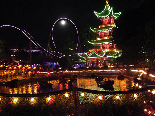 Muy cerca de la Plaza del Ayuntamiento encontramos el Tívoli, se trata del parque de atracciones más antiguo de Europa, además se puede disfrutar de sus maravillosos jardines y diversas actividades, como exposiciones, conciertos, etc.